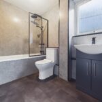 The recently refurbished bathroom has been finished to a high standard and includes a modern suite with bath, overhead rainfall shower, vanity unit and contemporary fittings.