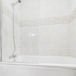 Both bedrooms are light and inviting, offering comfortable and versatile accommodation ideal for a couple, small family or home office setup. The contemporary bathroom is finished with elegant tiling and includes a full-size bath with shower over, vanity unit and chrome fittings, adding a boutique feel to the home.