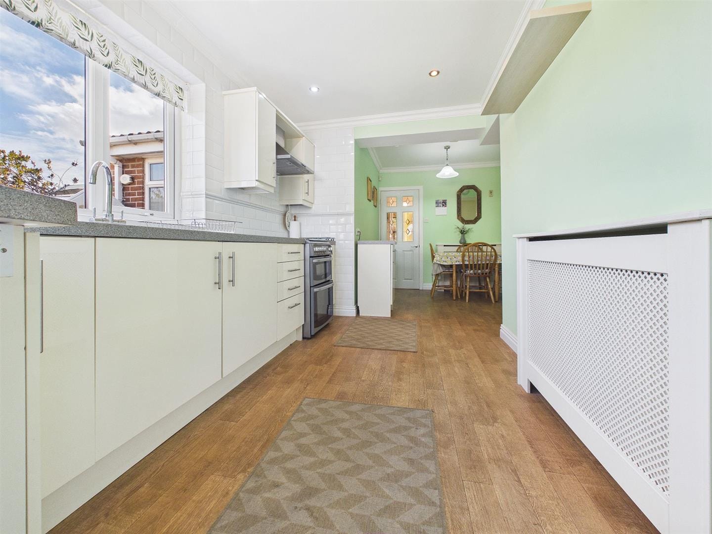 The kitchen/diner is well-proportioned, offering ample room for both cooking and dining, with access through to a useful utility area and onward to the garage. This layout presents excellent potential for modernisation or reconfiguration, subject to the necessary permissions.