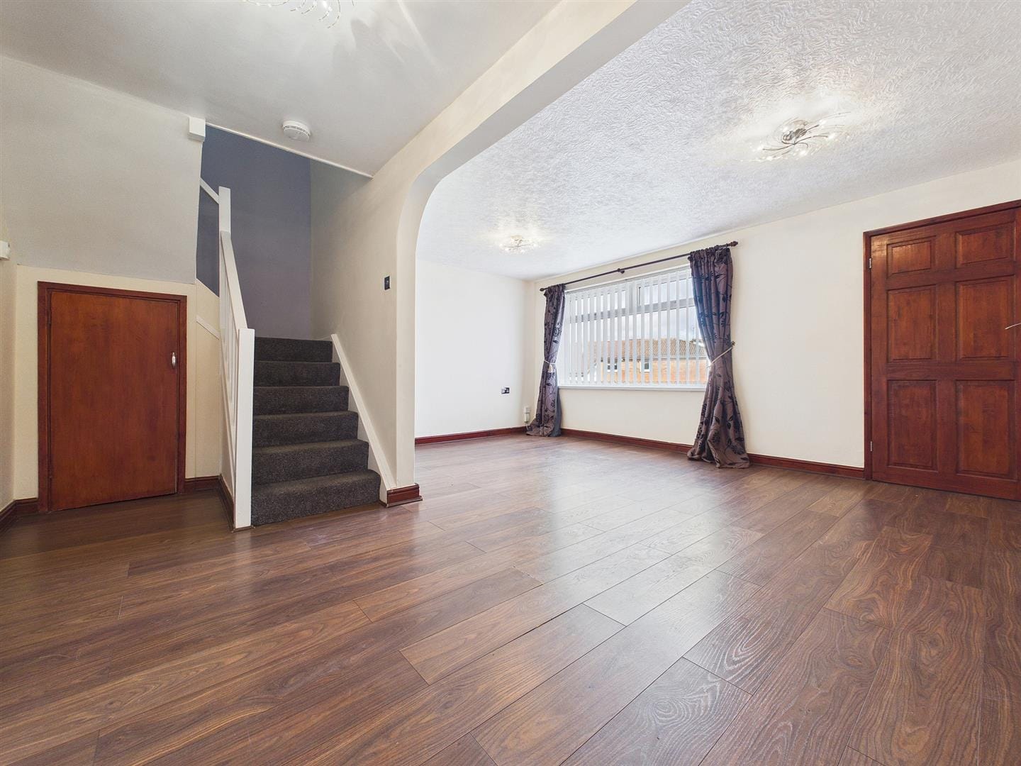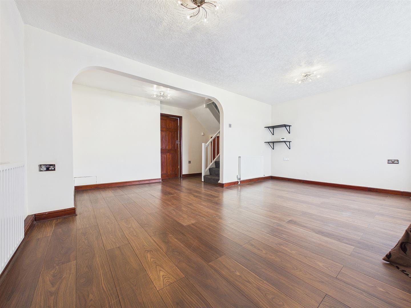 The ground floor features a welcoming entrance area leading through to a bright and spacious lounge, ideal for relaxing or entertaining. The room benefits from good natural light and a flexible layout, creating a comfortable everyday living space.